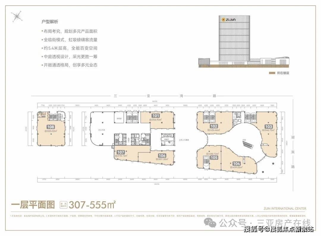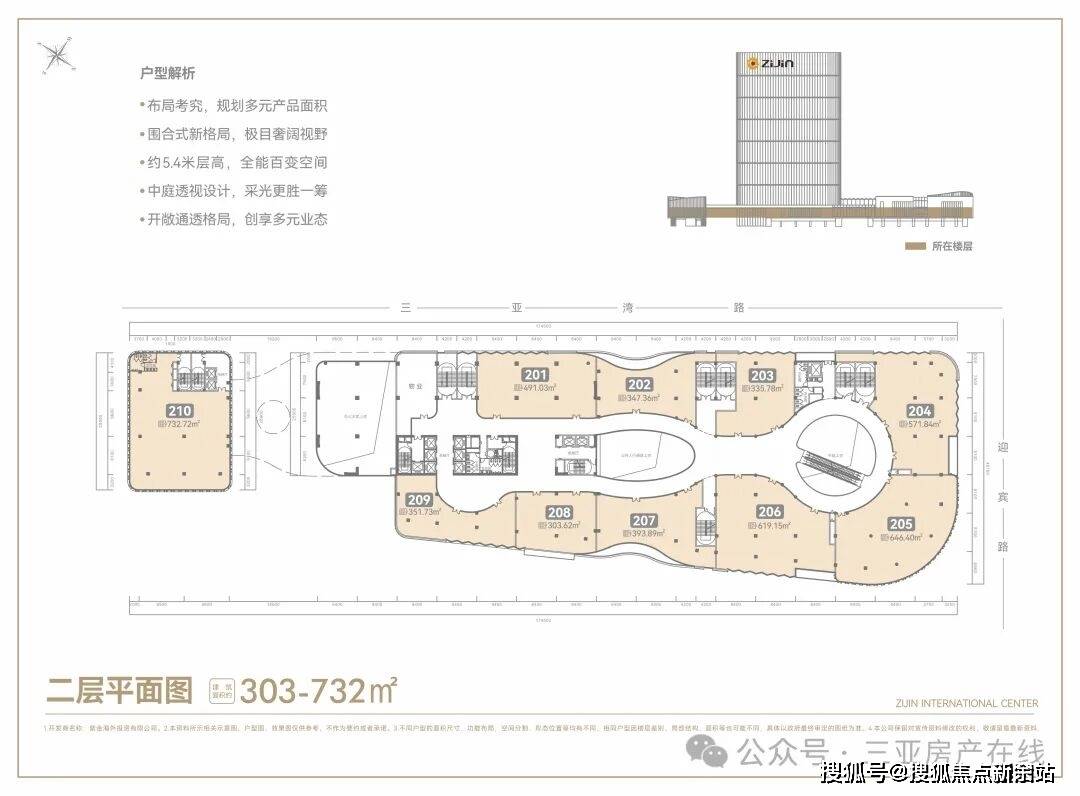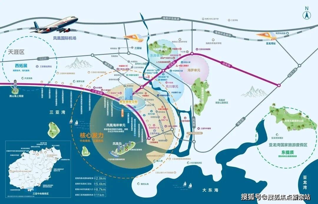 凤凰海岸单元——三亚中央商务区核芯片区,定位为旅游港自贸服务与邮轮、游艇、文化艺术综合消费区。紫金国际中心落位于此,匠造建面约6万㎡国际总部基地,实现区域城市服务、旅游文化、总部经济等产业资源全覆盖。